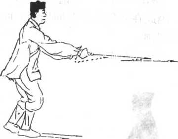 此谱,强调运用太极劲的旋摆腰胯,以示其摆尾之力。此式多用满把剑,属于攻 防兼备剑法之一,为防御之法。