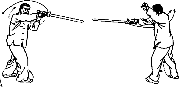要 求:以腰带剑,左哉指助之要抖出劲来,剑身与右臂伸 直骤停于面前。