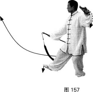 图155 图155附图 图156图155 图155附图 图156【要领】右手要活把握剑,动作才能运转自如;立身中正,松腰坐髓,双臂保持弧 形。