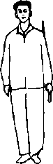 在剑术套路中,动作起势和收势,多以左手反握剑杷,其 方法是以大拇指由护手上向下,小指、中指和无名指由护手下 向上,然后用大拇指与另外三指将护手握紧,食指伸直附于剑 把,剑身贴于体左之后侧,剑尖上指(图十)。