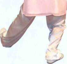 3.随身体右转约180。,左脚跟向 左碾转,右脚向右后方落步成右弓步;同 时右手握剑向前下方刺出,腕同腰高,手 心朝上;左手剑指附于右腕上,手心朝 下;目视剑尖方向。(见图98)要点:动作要连贯圆活,上体不要 过于前倾;弓步与刺剑要协调一致。3.随身体右转约180。,左脚跟向 左碾转,右脚向右后方落步成右弓步;同 时右手握剑向前下方刺出,腕同腰高,手 心朝上;左手剑指附于右腕上,手心朝 下;目视剑尖方向。(见图98)要点:动作要连贯圆活,上体不要 过于前倾;弓步与刺剑要协调一致。一、提膝提剑一、提膝提剑