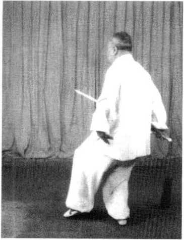 4 .此动作为转身以仰手平剑用双手向下刺出,故两眼向下注 视对方膝部。
