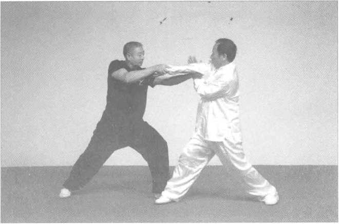 玉女穿梭软肋削,一上一下似抱梭。 上横下政腰发力,掌到腋下用力剁。图 6— 60 图 6-61图 6— 60 图 6-61退步牵羊双手寻,此招用好变化多。 缠住敌手向后牵,坐腰坐胯无奈何。图 6-63 图 6—64退步牵羊双手寻,此招用好变化多。 缠住敌手向后牵,坐腰坐胯无奈何。图 6-63 图 6—64图 6 -66图 6 -67霸王送客是一绝,上压下托向上抉。 续力上步拿枪式,此式用严实难解图 6 -66图 6 -67第四趟