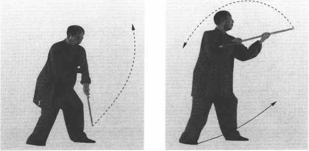① 身略右转;两手持棍向右下方拨打;眼看棍前端。(图3- 273)