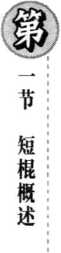 应用:压棍技法是配合其他动作运用的。一般情况下在对 方受到击打而导致弯腰,身体前倾时,用棍由上向下压其后颈 部;或者对方受到击打导致身体后仰时,再用棍由上向下压其 喉部。在其喉部和后颈部压棍,轻压后带可致其倒地,重压猛 击可致伤残。