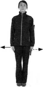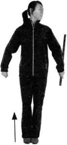两脚并步成立正姿势,左手持棍端背棍于前臂后,棍身 紧贴前臂;右臂自然垂于体侧,上体保持正直,目视前方。 (图 26)