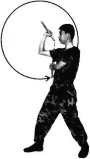 (6) 松开左手,右手持棍向右下运棍,使棍由左上向右下运行,棍运行 至右后下方(图5 -262)。