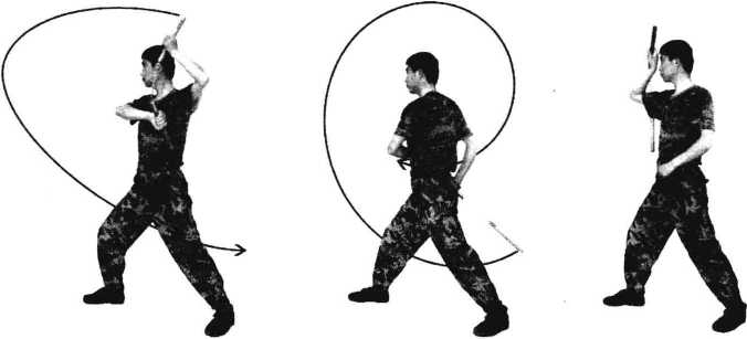 (1) 图 5 - 256右脚在前,成右挎棍姿势(图5- 257)。