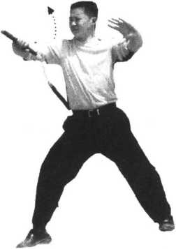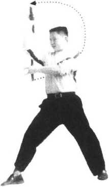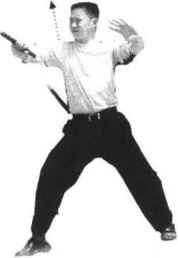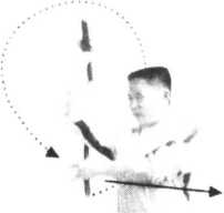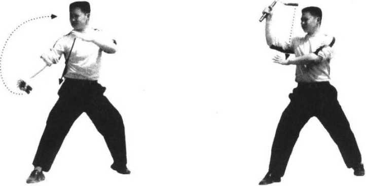 6 .借反弹之力向上提棍,成右侧接棍势(图13、14);