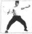 7 .上动不停,右手向前运棍,至右腋下时夹棍,成毒蛇吐信势(图15)。