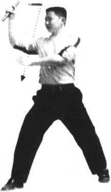霹雳两节棍连动表演技巧是将各种不同风格的组合棍法赋予一定的节奏,有机地串联 编排,以利于研习者平时系统训练和表演。