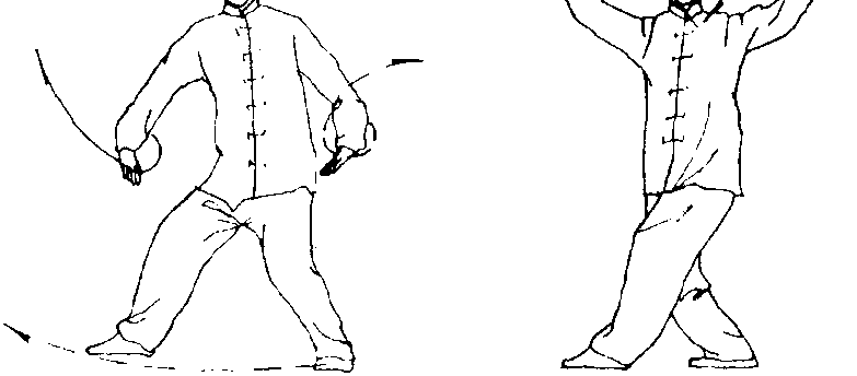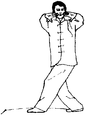 (3)右脚经左脚内侧踝向前上一步,左脚不变,上体略向右