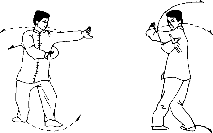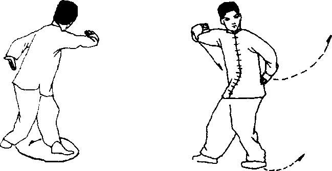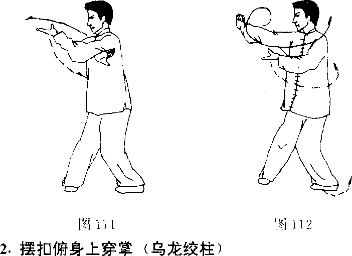 3 .摆扣转身撑掌(玉带围腰)