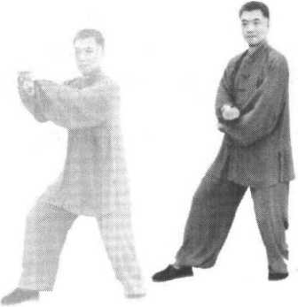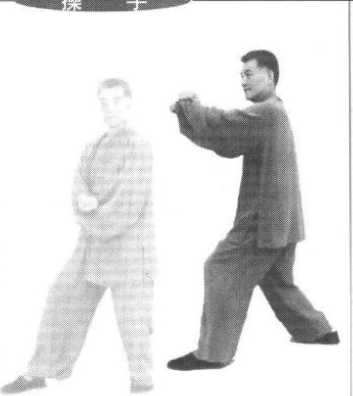 左前右后两足分立, 成重心前四后六的四六 步。双手握拳,合抱于 胸前,二目向前平视。撞打撞打右足踩,左足下蹬, 同时双掌掌背向前,掌 指相对在胸前成圆抱姿 势向前抖出浑身之力。 二目向前平视。如此反 复练习多次。前足踩,后足蹬, 同时双拳贴拢,双臂成 圆抱姿势,向胸前抖撞 出浑身之力。二目向前 平视。换成右足前左足后 的四六步。同时双手握 拳,收回于胸前,二目 向前平视Q
