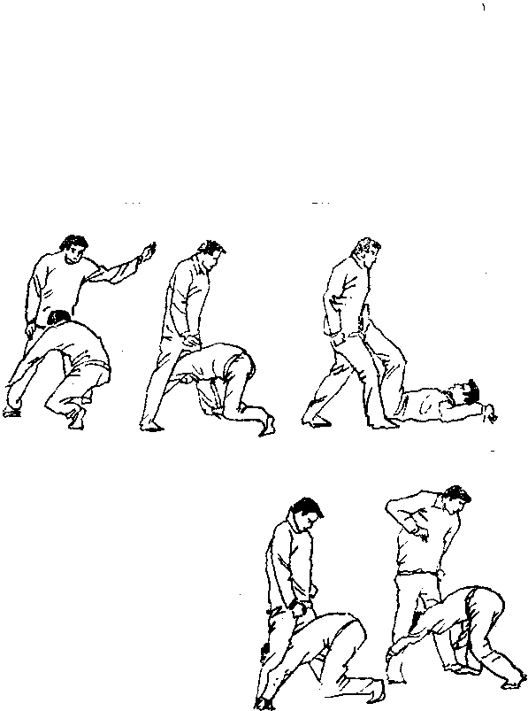 (图6—133),作前滚翻动作。滚翻后,双足猛蹬敌前胸 (图6—134).敌被蹬必仰而后跌。