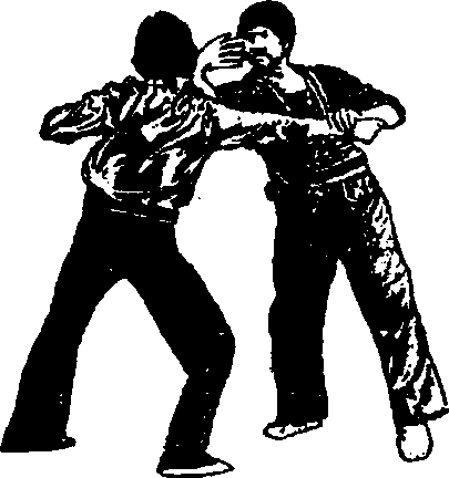 5 .迅速用右手反手击向对手的头部。可通过猛拉对手的右 腕来增大打击的力度。