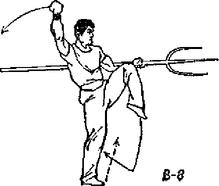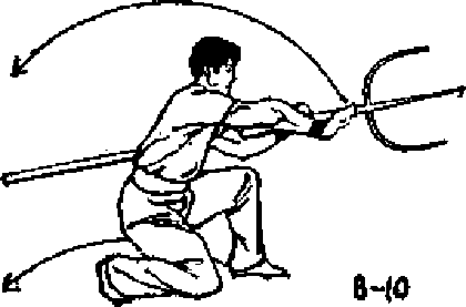 ① 右手握耙上把段.同时左手放锂(图B13)>
