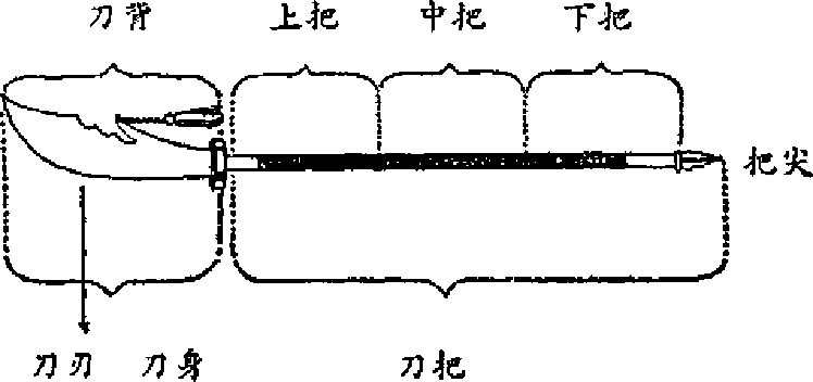 双手握把,右手心向上,刀刃朝左(或前),平伸臂向 前(或右)为扎刀。
