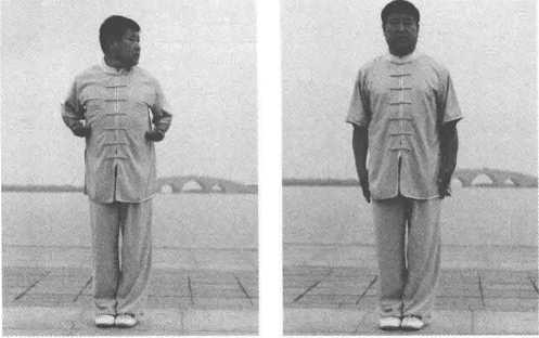 两腿并拢直立,两臂自然下垂于身体两侧,下颗微收,五指并拢贴在两腿外侧, (图 8-1 )