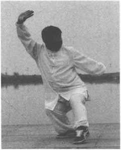 要领:右腿、左腿向前迈步的同时,两手向上画弧要同时进行。