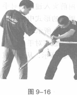 第二种,与对手进行局部接触,比如,杀手残肢 时,最好进行顺势打击,如图9-14一图9-16所示。