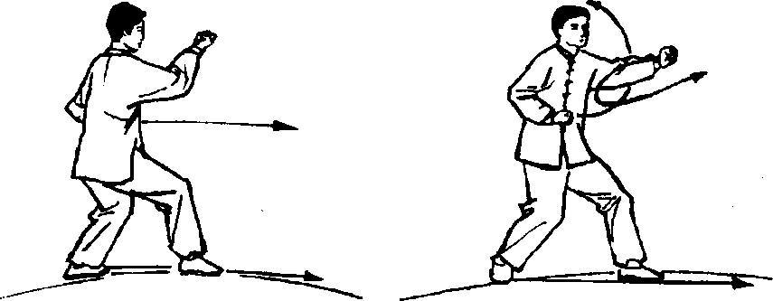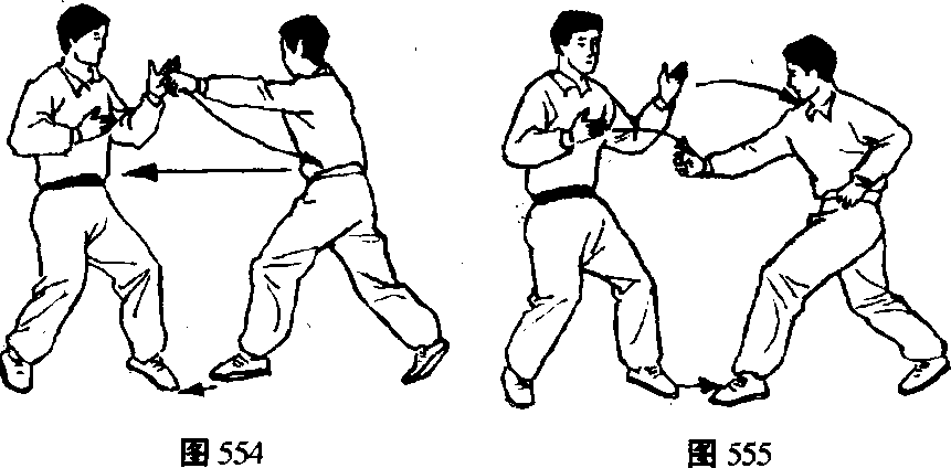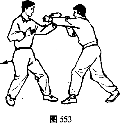 乙左脚进步右脚跟步以左直拳击甲面部。(图553)
