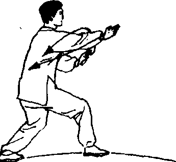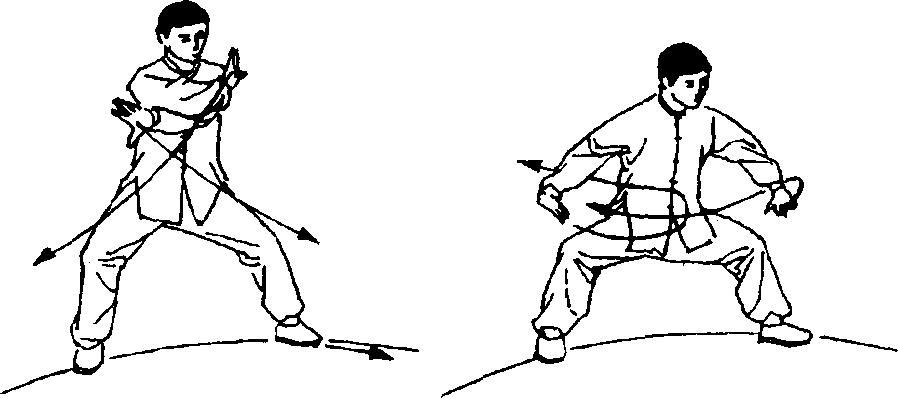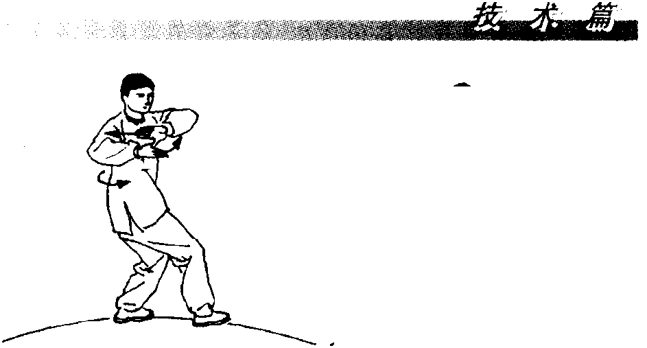 〔要点〕双手翻转旋绕,要灵活,双肘撑圆,双掌离体 右半尺左右。