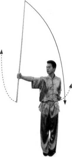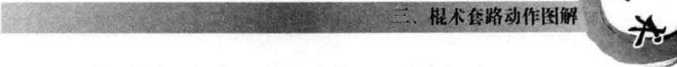 注:动作图解中,实线(——)表示下一动作右手、右脚、 棍梢的运动路线,虚线(……A)表示下一动作左手、左脚、棍把 的运动路线。