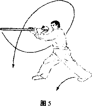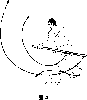 展腰,更不能灵活自如地变换运用鞭杆的运动方向及应发挥的力 度和劲度。同时,掌面及每个指关节与鞭杆的每个接触点在运用 过程中,特别是在变招换式过程中的支点和力点的移动对发力有 着至关重要的作用。