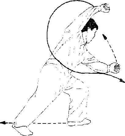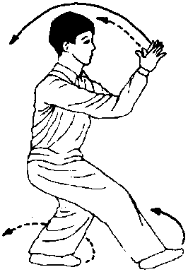 换式:顺左步,扣右步,再摆左步同时双手握拳,由头