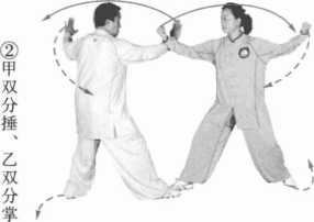 动作要点:甲方分捶力达拳背,乙方分掌要有外拨之力。