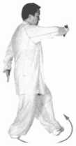 (2) 甲乙左脚外摆,右脚内扣;两臂合于胸前,左掌在上,掌心向下,右掌 在下,成左叶底藏花(图2-4-31③④)。