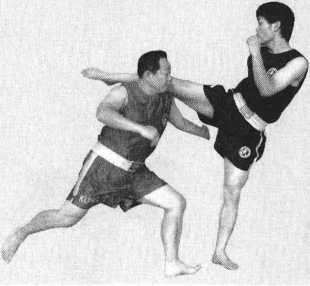 避开对方右鞭腿打击,迅速靠近对方,带动我方身体左转。弧形进步,巧妙 避开对方右鞭腿有效打击区域,并且,进步增加躯干前移速度,带动右腿运动, 提高上右步速度,利于我方快速靠近对方。同时弧形上步,带动我方身体左转, 有利于快速左转身,为后面迅速左上转腰创造条件。