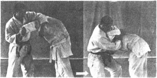 腾起腰,身体向后仰,两条大腿夹住对方的右臂,这三个动作要同 时完成,方可在一瞬间削住对方。