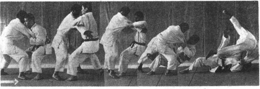 ④ 开始时可分解动作练习:抱住受方的身子,蹲下,倒身,待这 '些动作练习有了进步之后,再练习着摔对方。