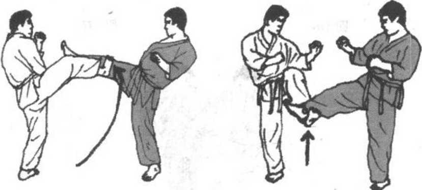 此技以攻为守,十分主动,要想灵活掌握并运用有相当难 度,因为运用者需有良好的预测洞察力和后发先至的动作速度。 因此实战空手不提倡初学者练习此技。此技类似于截拳道的低位 截踢。