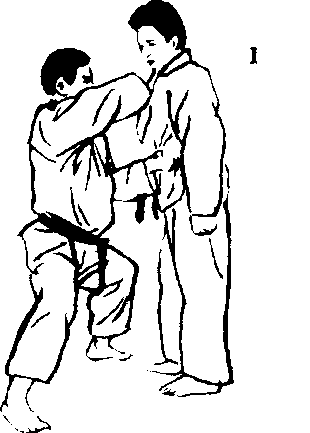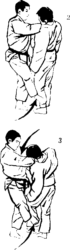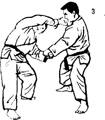 3. 当对方失去平衡, 倒向自己的正侧方时, 双方还是保持握住的姿 势,以免对方顺势倒下。