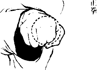 以正拳的握法,使中指的第 一指突出,搏指压住中指的第一 关节部传用来攻击的部位,是 中指的第二关节,攻击是以要害 为主。例如人中、喉咙和心窝等 部位。