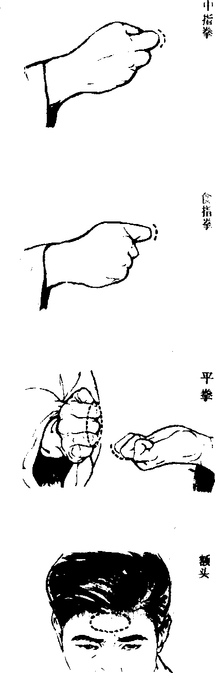 握住和平拳一样,使甩食指、 中指的箄三关节头和乎背等部位〃