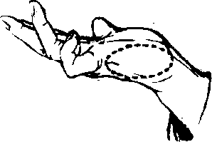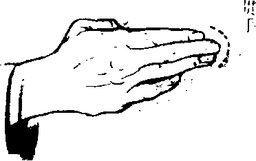 当手张开时,若再扩张手指 的距离就危险,所以各指之间要 贴紧,栂指从第一关节弯曲,然 后从第二关节外张。