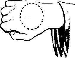 使用食指第二关节的部位。 以正拳的握法,只突出食指,使 第二关节的部位突出,拇指按住 食指的第二关节。