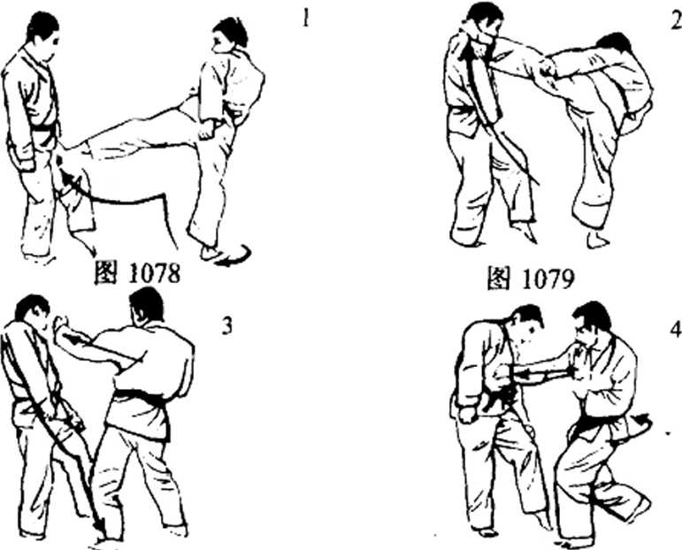(3) —而落地,一而以左手朝脸孔使出正拳(图1080),