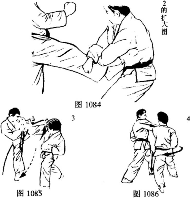 (4) 即使回踢被接住,在落地的同时,也能挡住对方朝中段 反击的正拳突击(图1086k
