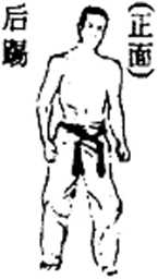 (3) 保持原来姿势,把膝盖向后伸,朝对方的心窝,喉咙,脸 孔等直线踢出。后踢使用的部位,可以是虎趾或脚跟。