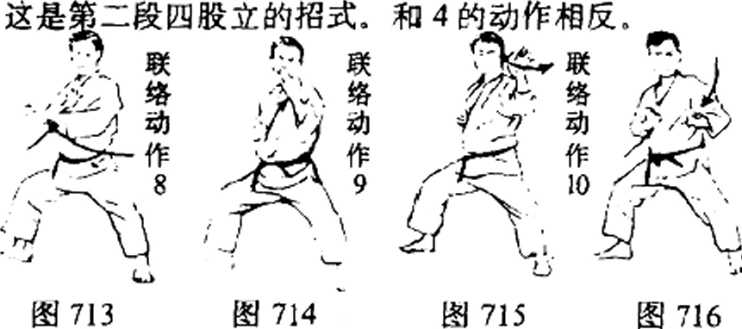 (7>左四股立四十五度,双手反取(图712), 和3的动作相同,