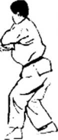 以猫足立朝左脚前方踏入,摆出滑足立架式9手一而以左