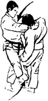 (1) 四股立,右手抓住对方的 衣襟,左手则抓住衣带,双手拇指 朝下败时钟方向拖带(图897),