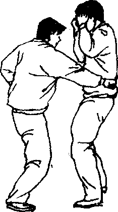图26图26[动作]乙双手举起护头,两脚左右开 立,与肩同宽。甲用小臂由左向右或由右 向左撞击乙双肋(图26)。一侧肋部连靠数 次,再靠另一侧肋部;也可以左右肋部交 替靠撞。