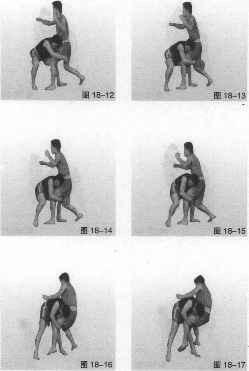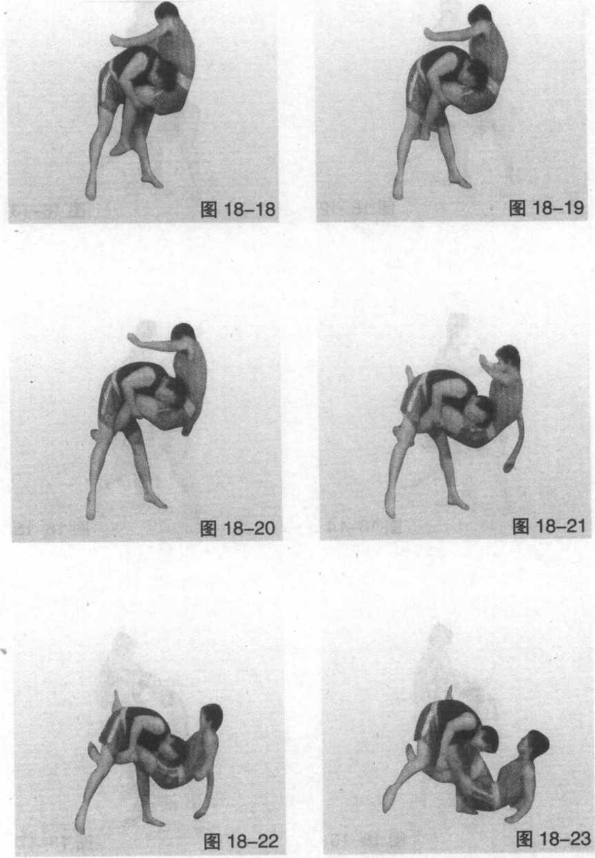 【抱腿前顶摔连续图谱】(图18_4至图18-23 )