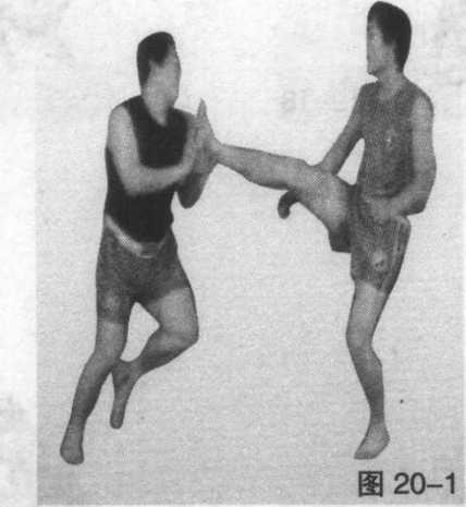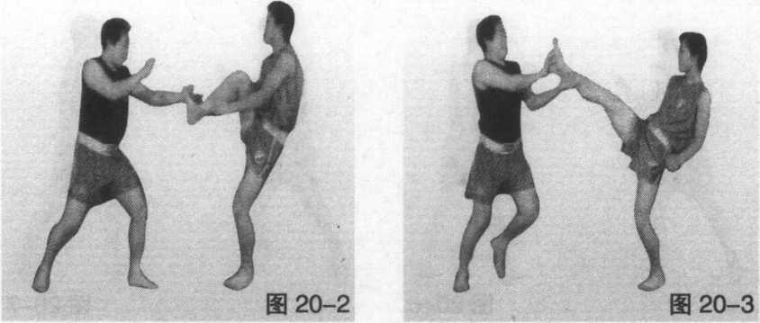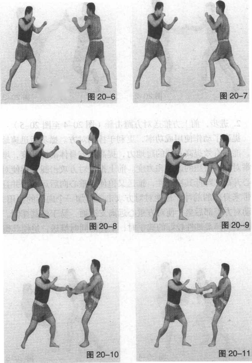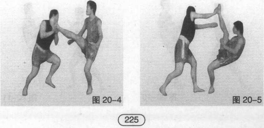 2?进步,前上方推送对方蹬击腿(图20-4至图20-5 )